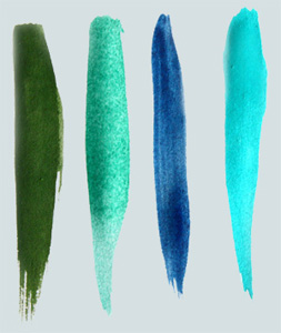 1. kép A bal oldali króm-oxid zöld és a jobb oldali cölin kék festékfolt sokkal jobb fedőképességűek, mint a köztük lévő színek, pl. a króm-oxid hidrát vagy a poroszkék.